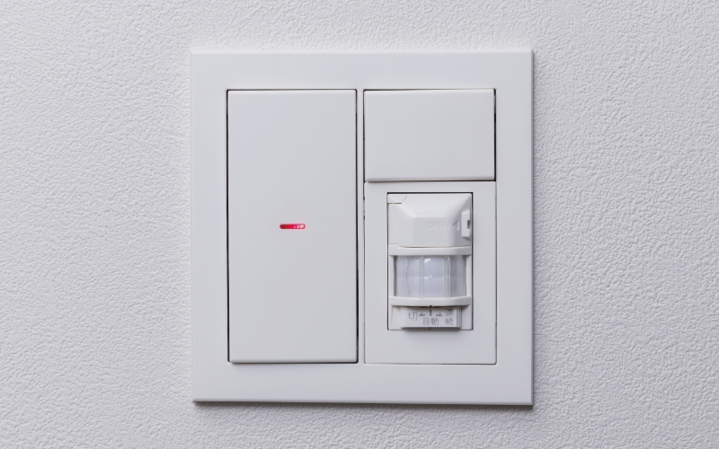 玄関には、人が近づくだけで自動で点灯する人感センサー付き玄関照明を採用。