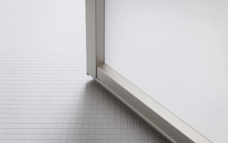 カビが付きやすくお手入れも大変なドア縁のゴムパッキンをなくし(浴槽側・脱衣所側両方)、汚れがたまりやすいドア下の凹凸を少なくしました。