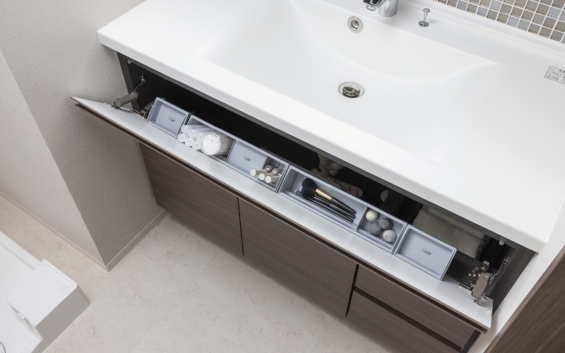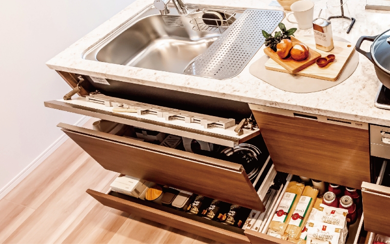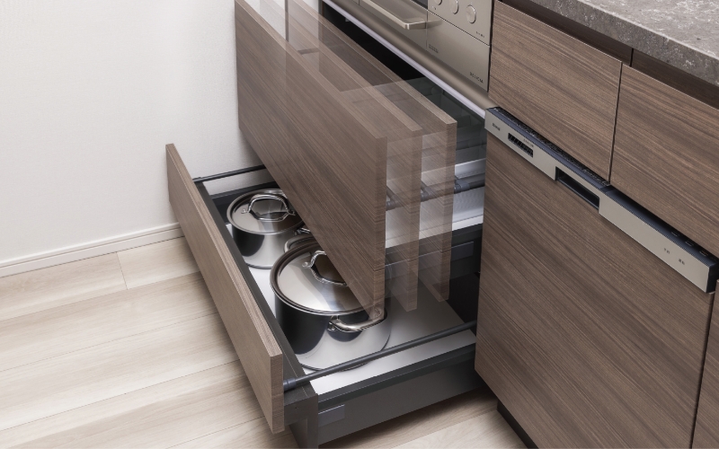 足元ギリギリまで無駄のない効率的な設計で、収納力をアップさせ豊富な収納スペースを実現しました。