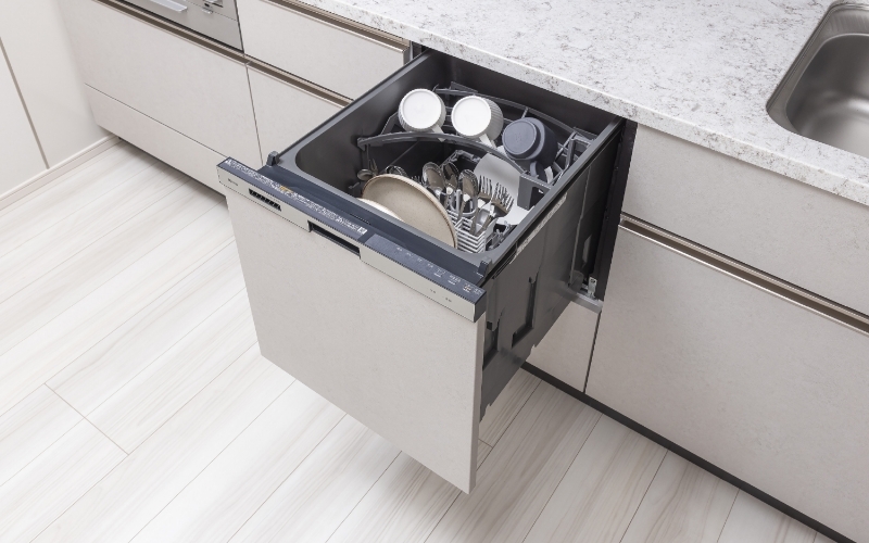 キッチンと調和するデザインが特徴。洗浄機能を高めたサークルラックや押すだけクイックスタート機能も付属しています。