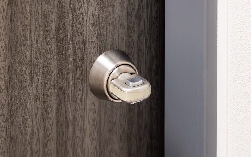 スイッチを押しながらサムターンを回す仕組みで、外からの不正解錠を困難にします。