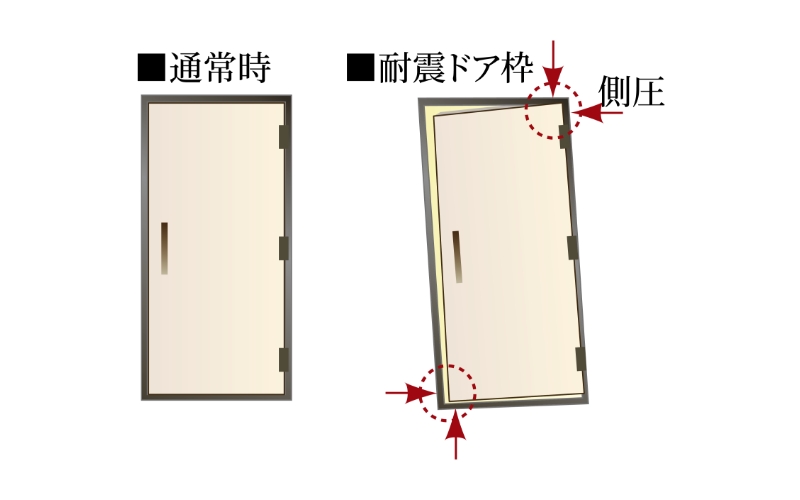 基準値範囲内における地震による変形でドアが開かなくなる状況を軽減します。