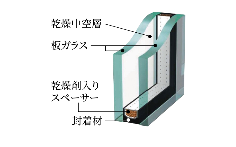 住戸のサッシのガラスは、中空層側に特殊金属膜(Low-E膜)をコーティングした「Low-E複層ガラス」を採用。「特殊金属膜(Low-E膜)」により、複層ガラスの断熱性能がより高まります。また冬季は、外部から日射熱を取り入れる効果も期待できます。