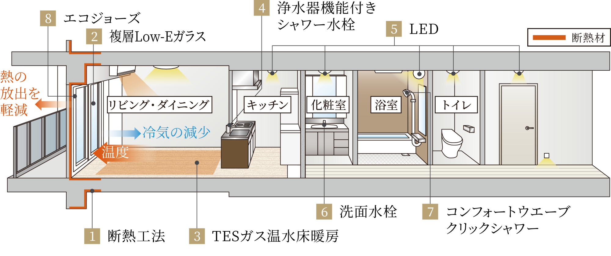 断熱性能を高め、高効率設備の導入によって快適な室内環境を保ちつつ、