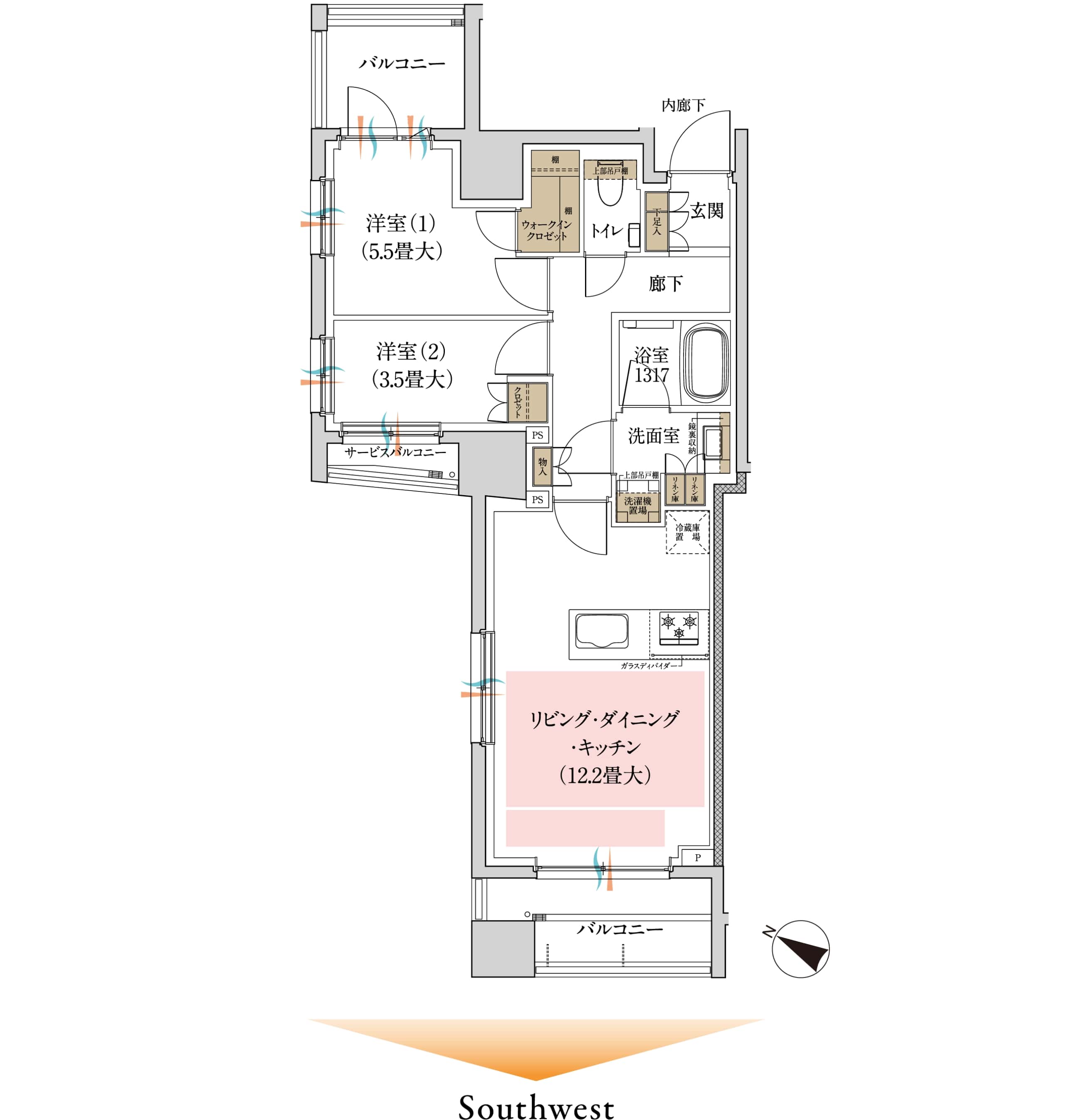 サービスバルコニー面積/1.69㎡(約0.51坪)