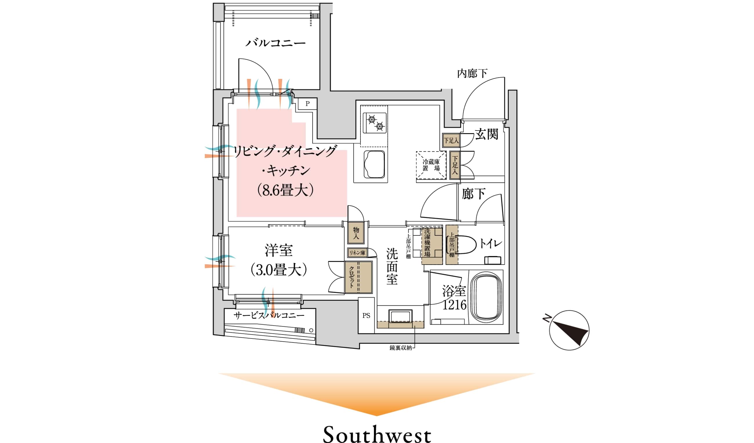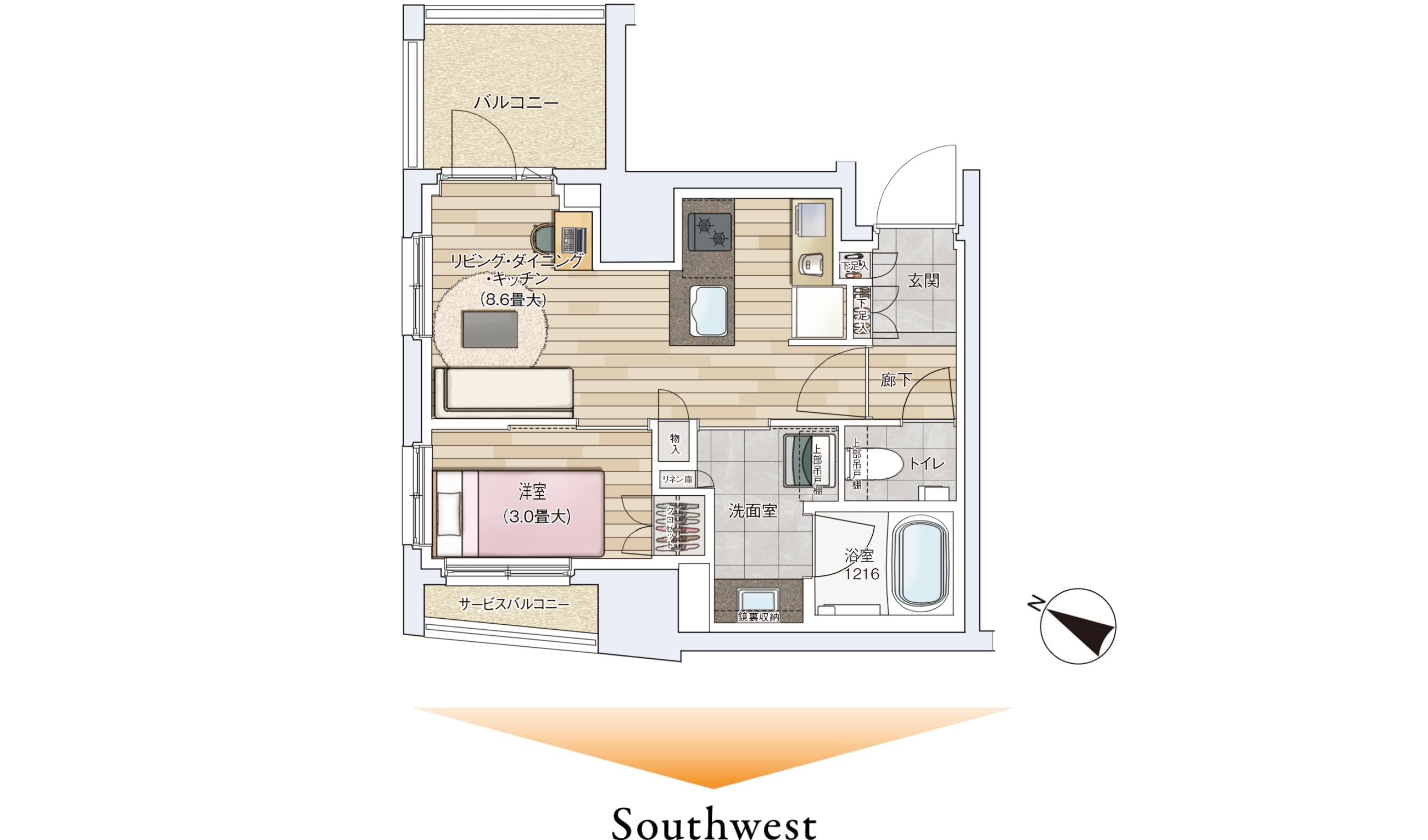 専有面積/31.55㎡ (約9.54坪)バルコニー面積/4.22㎡(約1.33坪)
