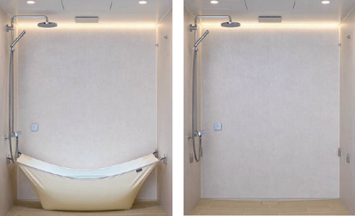 リムーバブルな浴槽を備えた浴室空間、「bathtope」。
